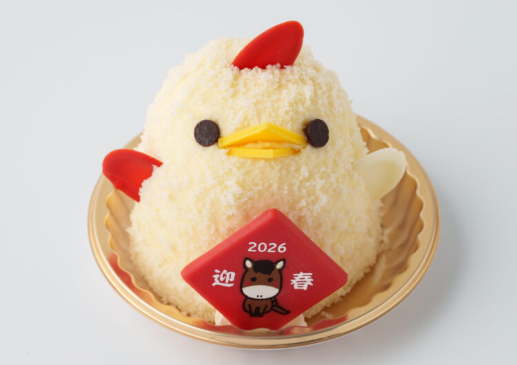 名古屋コーチン卵を贅沢に使用した濃厚なプリンを、やさしい甘さのホワイトチョコババロアで包み、甘酸っぱいイチゴジュレを忍ばせました。羽とトサカはお祝いにふさわしい紅白カラーで仕上げ、来年の干支である「午(うま)」にちなみ、胸元には馬のイラストをあしらったチョコレートを飾っています。新しい一年の始まりに、見た目も味わいも楽しめる、縁起のよいぴよりんです。